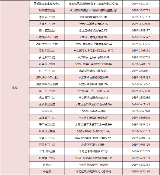 龍巖市永定區(qū)新冠病毒疫苗接種點(diǎn)信息