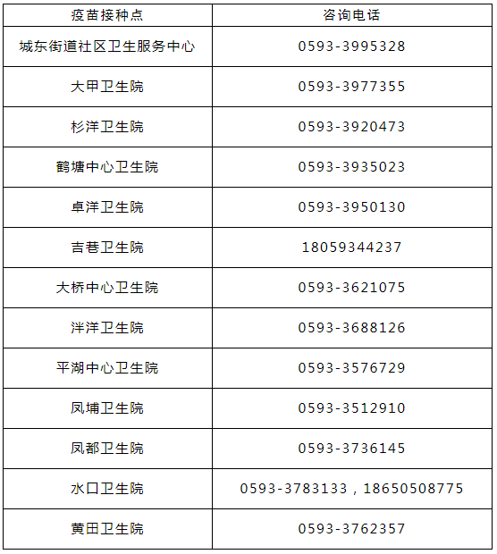 接種地點(diǎn):福建省寧德市古田縣城東街道解放二支路6號