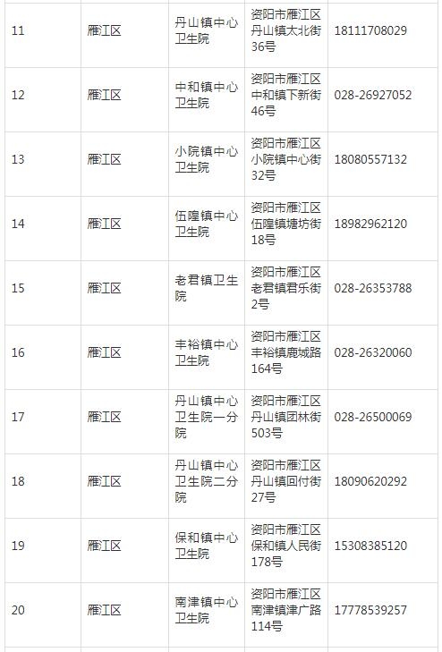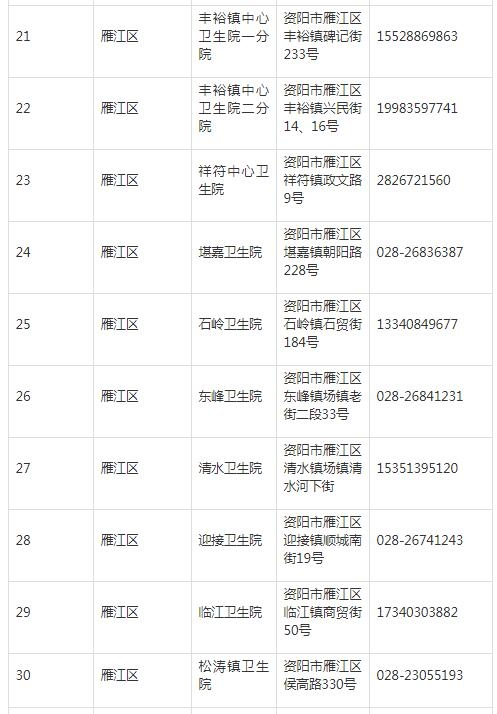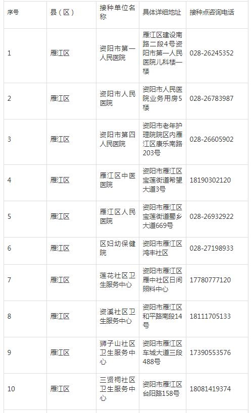 資陽市雁江區(qū)新冠病毒疫苗接種點(diǎn)信息