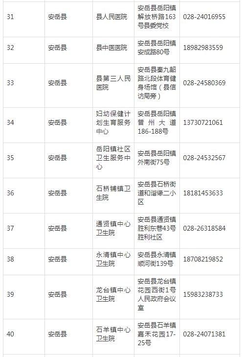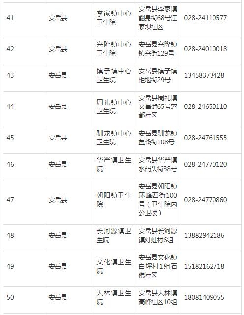 資陽市安岳縣新冠病毒疫苗接種點信息