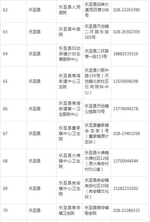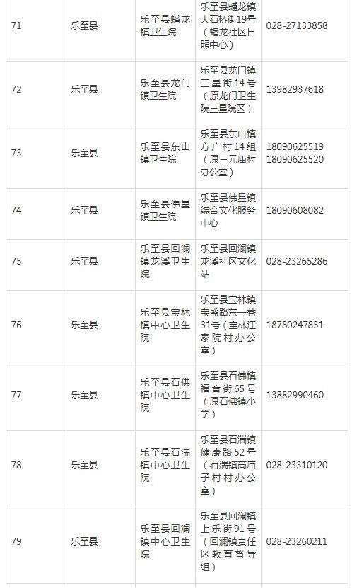 資陽市樂至縣新冠病毒疫苗接種點信息