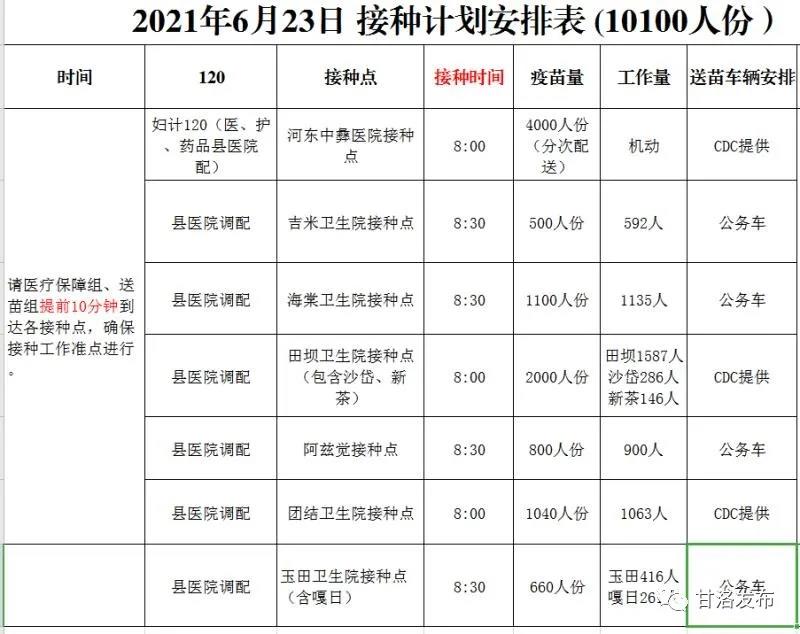 涼山州甘洛縣新冠病毒疫苗接種點信息