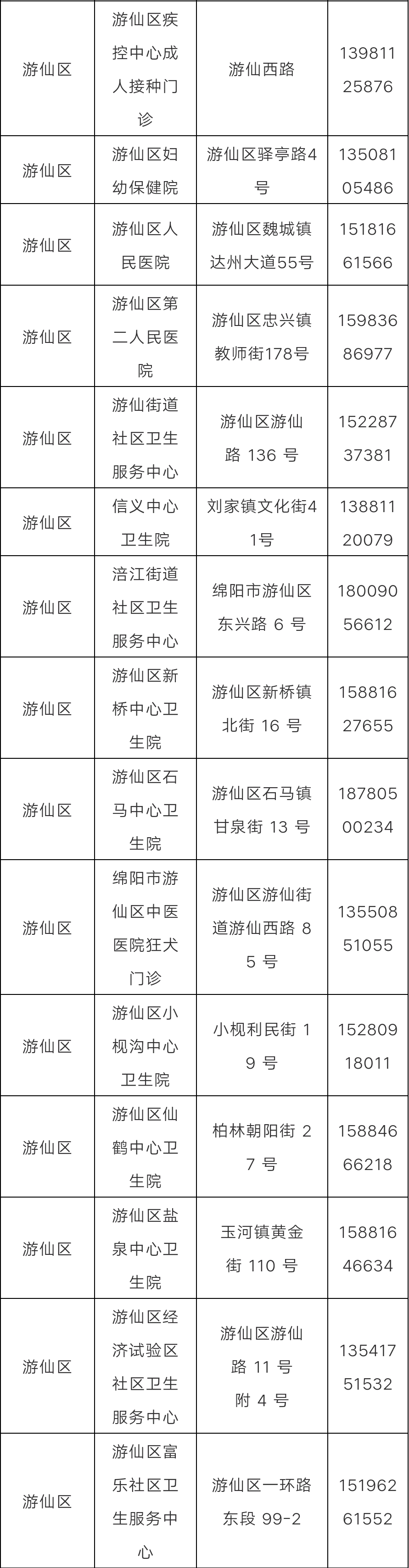 綿陽(yáng)市游仙區(qū)新冠病毒疫苗接種點(diǎn)信息