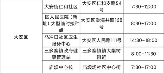 自貢市大安區(qū)新冠病毒疫苗接種點(diǎn)信息