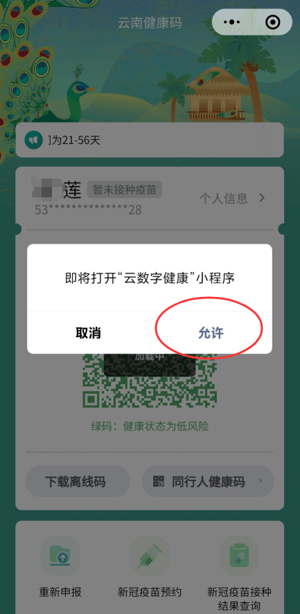 第一步:云南健康碼跳轉(zhuǎn)預(yù)約小程序