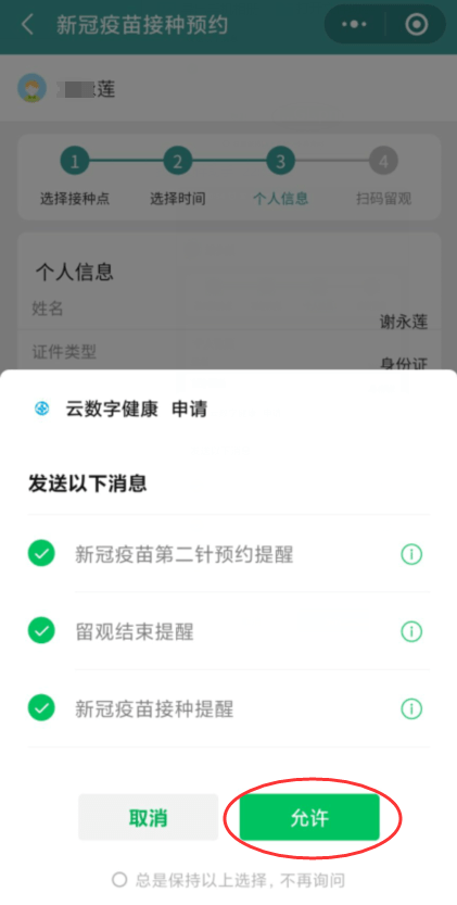 第五步:確認(rèn)個(gè)人信息,完成預(yù)約