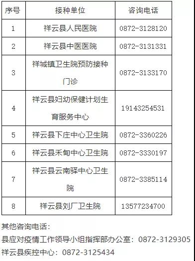 即日起,大理州祥云縣內18歲以上居民(含60歲以上)不論戶籍,身體狀況符合接種要求的均需免費接種新冠病毒疫苗,請您與所在單位或社區(qū)聯(lián)系疫苗接種相關事宜。零散居民、流動人口也可攜帶身份證,就近自行前往接種點接種,接種點會根據(jù)疫苗供應情況、日接種能力、排隊順序等發(fā)放接種序號。注意;接種點開放時間不定時有調整,建議先電話或者網上預約咨詢;祥云縣疾控中心新冠病毒疫苗接種咨詢電話:0872-3125434;祥云縣新冠病毒疫苗接種單位名單、地址、接種時間和預約電話等相關信息請看這里↓↓↓