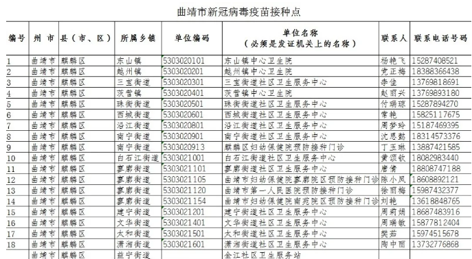 曲靖市麒麟?yún)^(qū)新冠病毒疫苗接種點(diǎn)及預(yù)約咨詢電話