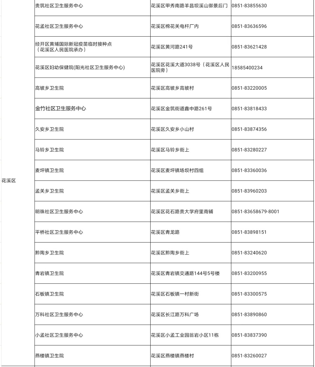 貴陽市花溪區(qū)新冠病毒疫苗接種點及預(yù)約咨詢電話