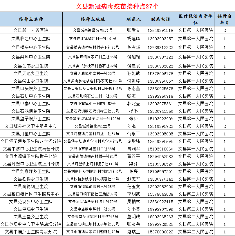 接種地點:甘肅省隴南市文縣碧口鎮(zhèn)下街社區(qū)后街37號