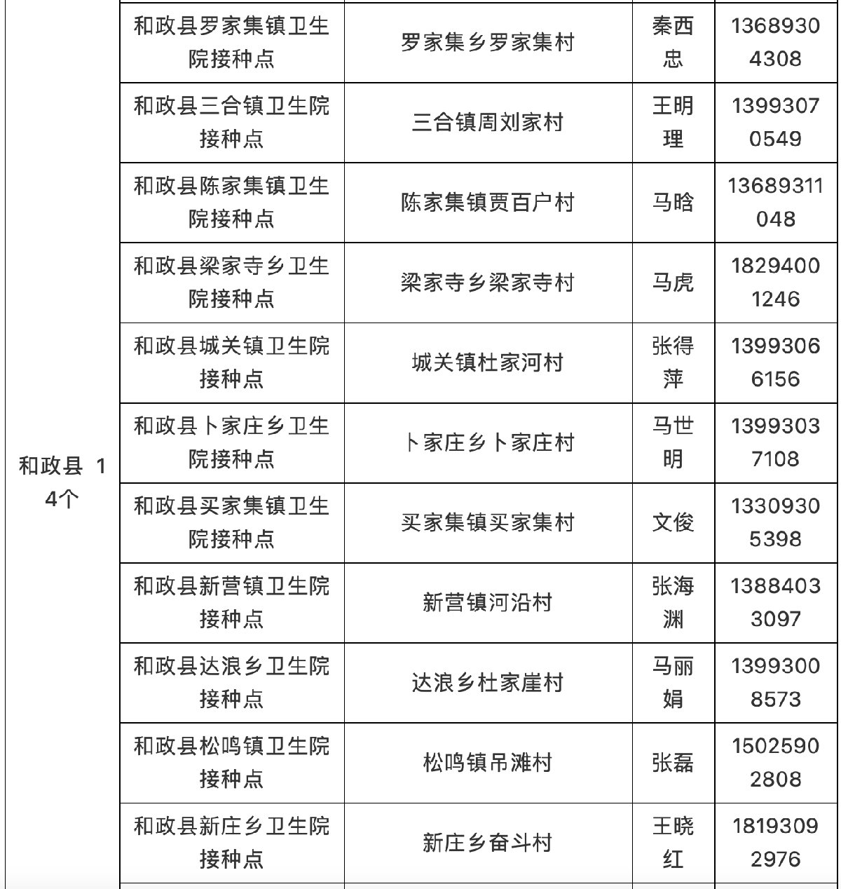 12、和政縣新莊鄉(xiāng)衛(wèi)生院接種點(diǎn)