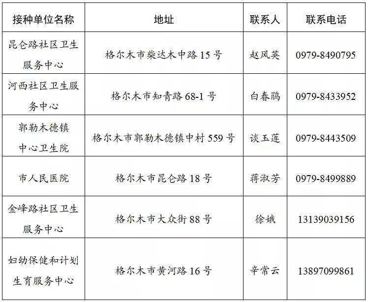 接種地址:青海省海西州格爾木市柴達(dá)木中路15號