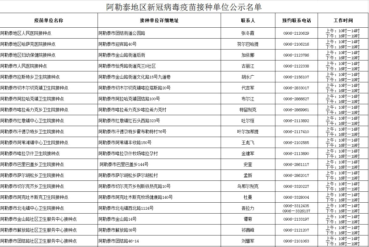 接種地點(diǎn):新疆自治區(qū)阿勒泰市金山路六道巷9號(hào);