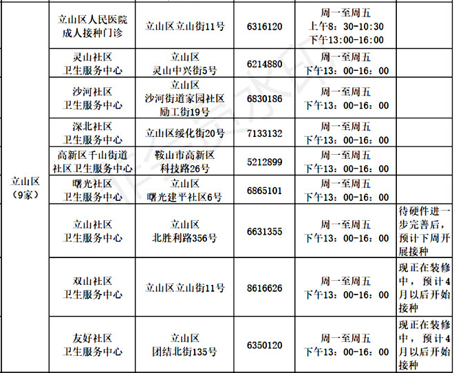 接種地點:遼寧省鞍山市立山區(qū)立山街道新興社區(qū)立山街立山街11號