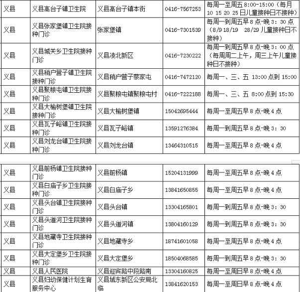 即日起,錦州市義縣內(nèi)18歲以上居民(含60歲以上)不論戶籍,身體狀況符合接種要求的均需免費(fèi)接種新冠病毒疫苗,請您與所在單位或社區(qū)聯(lián)系疫苗接種相關(guān)事宜。零散居民、流動(dòng)人口也可攜帶身份證,就近自行前往接種點(diǎn)接種,接種點(diǎn)會(huì)根據(jù)疫苗供應(yīng)情況、日接種能力、排隊(duì)順序等發(fā)放接種序號(hào)。注意;接種點(diǎn)開放時(shí)間不定時(shí)有調(diào)整,建議先電話或者網(wǎng)上預(yù)約咨詢,義縣新冠病毒疫情防控?zé)峋€電話:0416-7799012;錦州市義縣新冠病毒疫苗接種單位名單、地址、接種時(shí)間和預(yù)約電話等相關(guān)信息請看這里↓↓↓