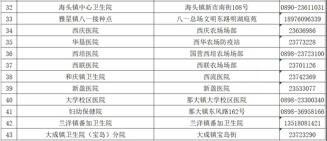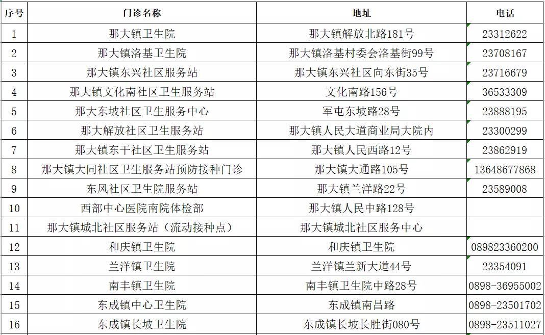 接種地點:海南省儋州市南豐鎮(zhèn)衛(wèi)生院中路28號