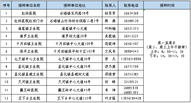 接種地點(diǎn):海南省昌江縣十月田鎮(zhèn)中心大道109號