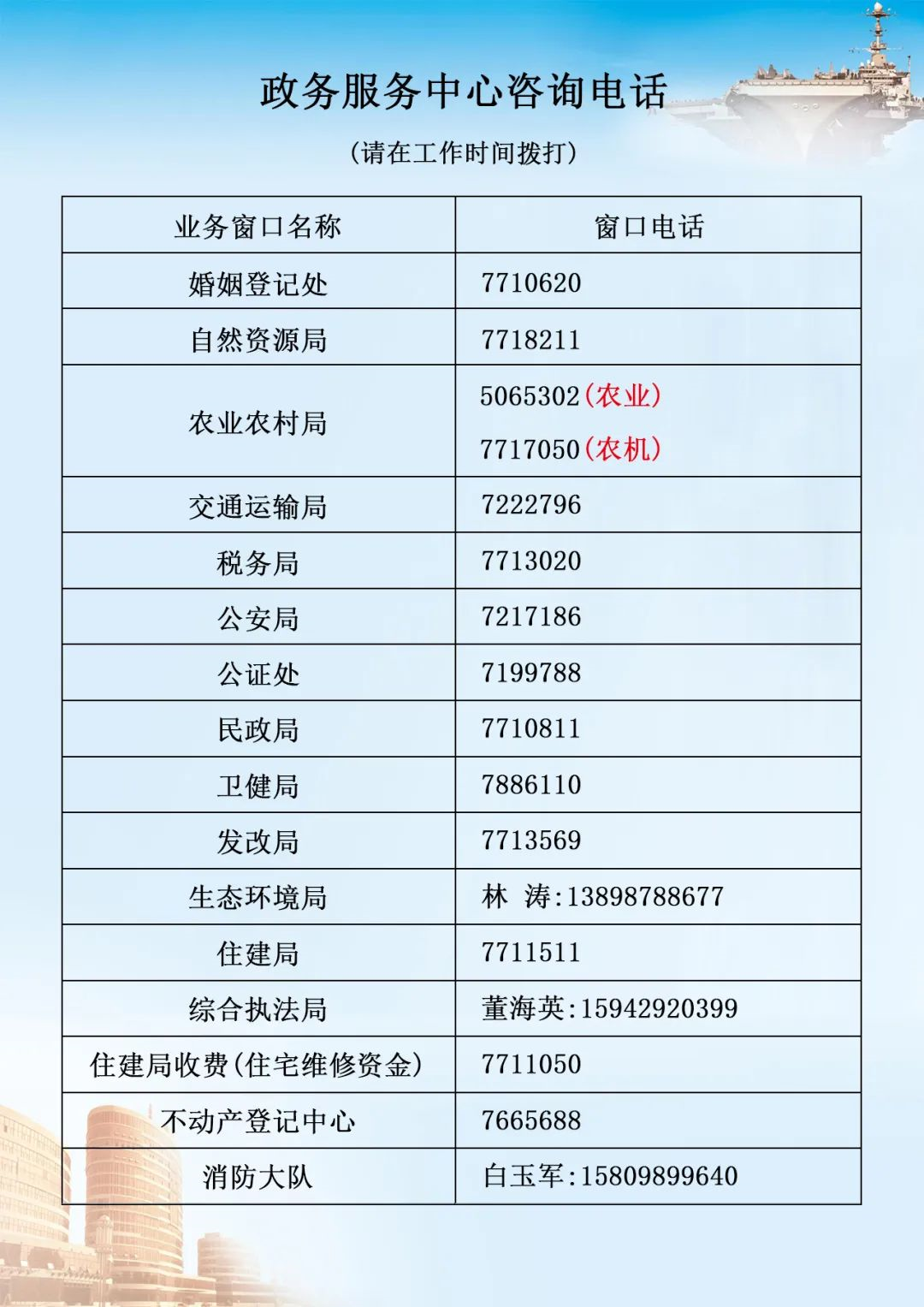 建昌縣公共行政服務中心辦事大廳窗口咨詢電話