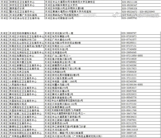 接種地點(diǎn):廣州市天河區(qū)旭景西街194號