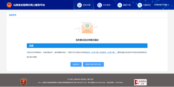 點(diǎn)擊完成后,系統(tǒng)會(huì)告知我們名稱已經(jīng)通過(guò)。