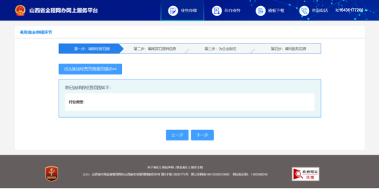 首先我們選擇企業(yè)的經(jīng)營(yíng)范圍,如圖所示: