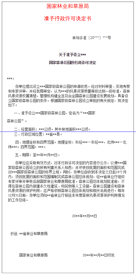 根據(jù)《國(guó)家級(jí)森林公園設(shè)立、撤銷、合并、改變經(jīng)營(yíng)范圍或者變更隸屬關(guān)系審批管理辦法》的有關(guān)規(guī)定,對(duì)材料進(jìn)行實(shí)質(zhì)性審查,作出許可決定。