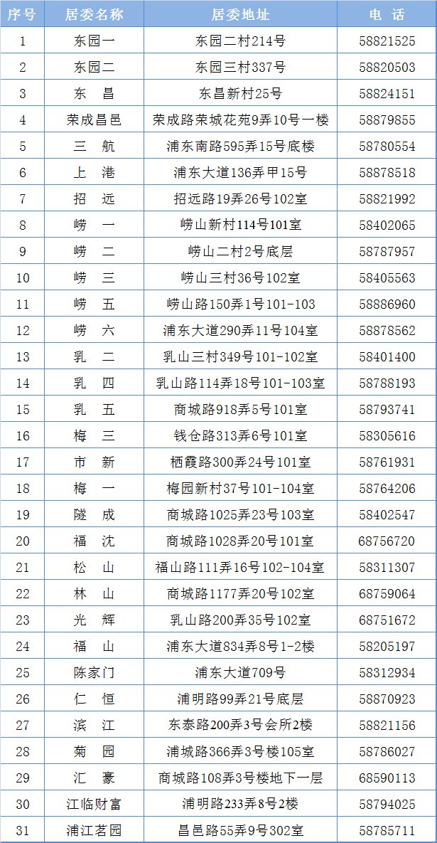 浦東新區(qū)為全力做好疫情防控工作,有效減少人員聚集,更好地滿足疫情期間居家生活和就醫(yī)服務(wù)需求,95商服網(wǎng)整理了浦東新區(qū)各街道為民服務(wù)熱線電話。詳見↓