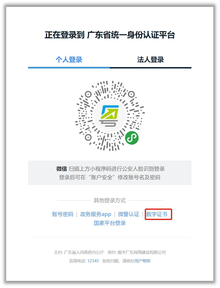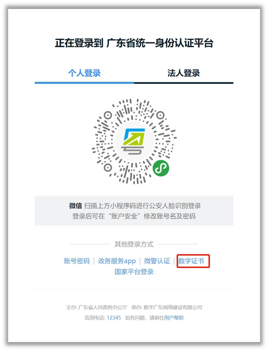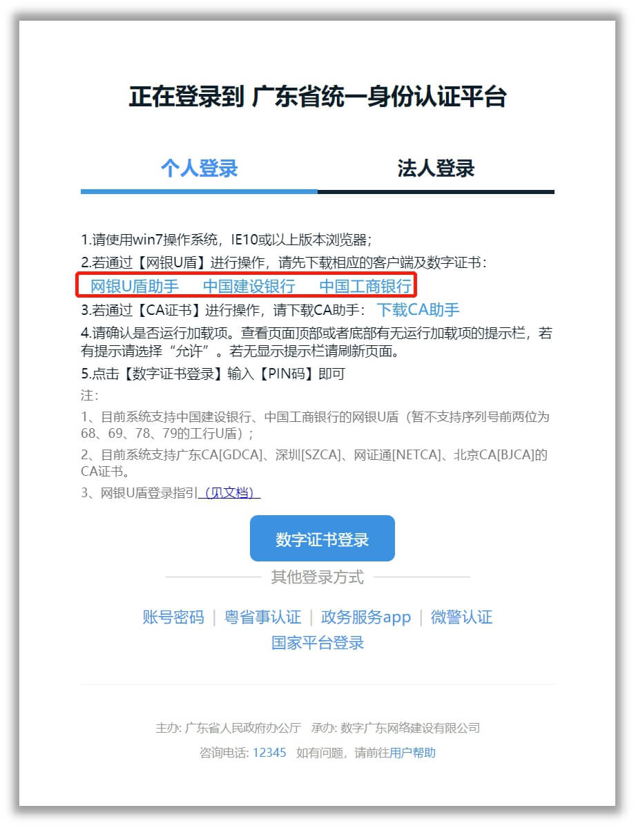 登錄時選擇“數(shù)字證書登錄”,進(jìn)入數(shù)字證書登錄引導(dǎo)頁面。