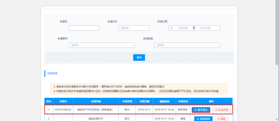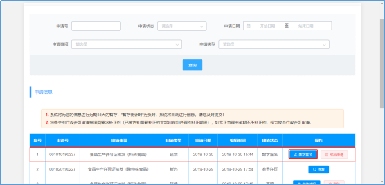 2)查詢到相關(guān)申請記錄以后,點(diǎn)擊數(shù)字簽名”;