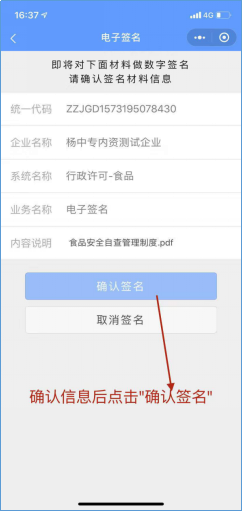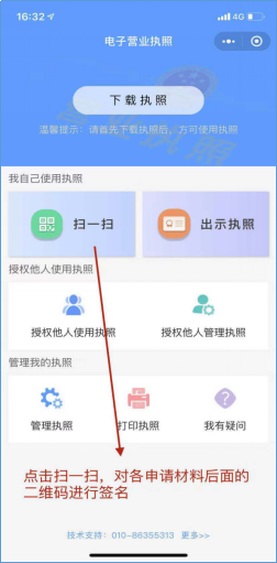 點(diǎn)擊各申請材料后面的“簽名”(數(shù)字簽名及提交簽名按鈕在申請材料標(biāo)簽頁),利用手機(jī)微信(或支付寶)小程序“電子營業(yè)執(zhí)照”對各個(gè)申請材料簽名。