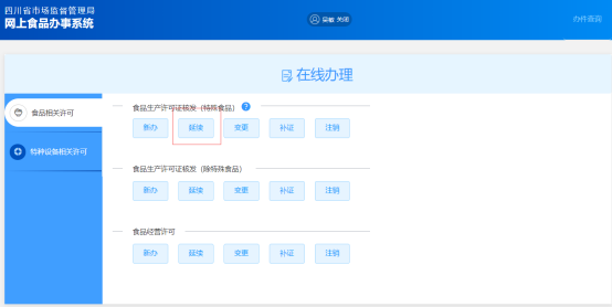 1延續(xù)申請操作流程同新辦一樣。食品生產(chǎn)許可證核發(fā)(特殊食品)延續(xù)申請由“申請”頁面的“延續(xù)”按鈕發(fā)起。