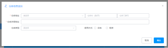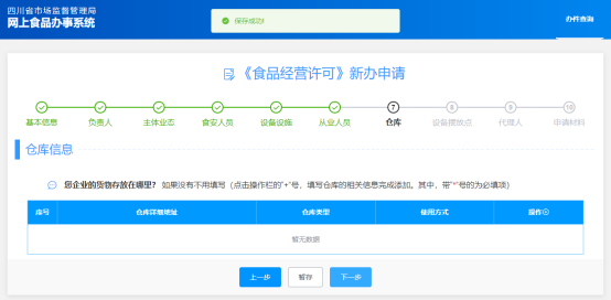 (7)“倉(cāng)庫(kù)”此頁(yè)簽填寫時(shí),可通過點(diǎn)擊“操作+”跳出編輯小窗口,然后對(duì)相關(guān)信息進(jìn)行填寫,填寫完后點(diǎn)擊下一步;