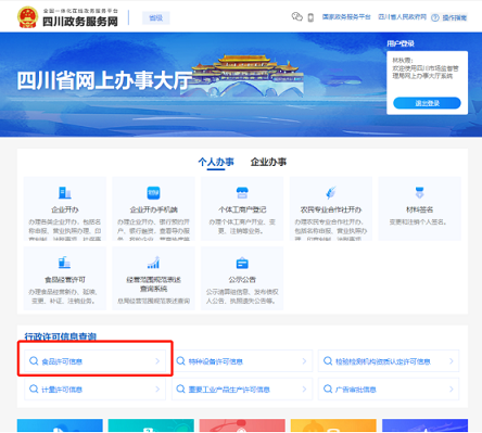 點(diǎn)擊進(jìn)入政務(wù)網(wǎng)——網(wǎng)上辦事大廳——行政許可信息查詢——食品許可信息: