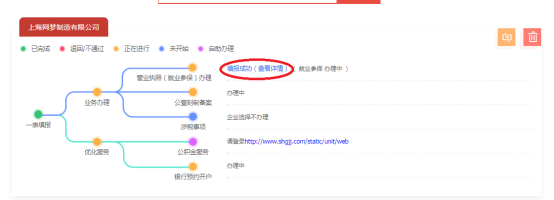 1.2 若您在辦理進(jìn)度跟蹤中,查詢到營業(yè)執(zhí)照(就業(yè)參保)環(huán)節(jié)狀態(tài)顯示“填報成功(查看詳情)”的,點擊藍(lán)色的“填報成功(查看詳情)”字樣,即可按需選擇無紙化全程電子化登記方式開展登記。