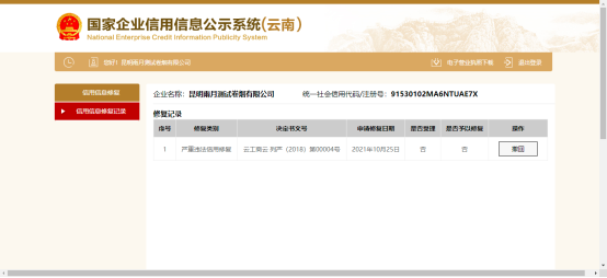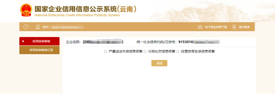 云南省市場監(jiān)督管理局信用信息修復(fù)操作手冊