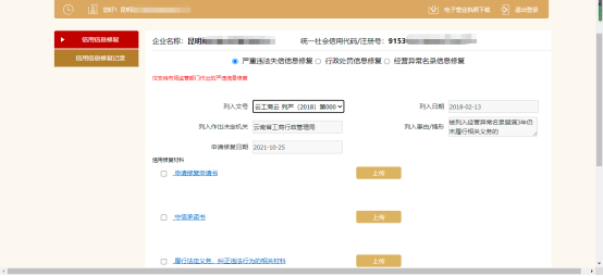 選擇“行政處罰信息修復(fù)”和“經(jīng)營異常名錄信息修復(fù)”也是相同步驟(只能申請修復(fù),市場監(jiān)督管理局做出的行政處罰)