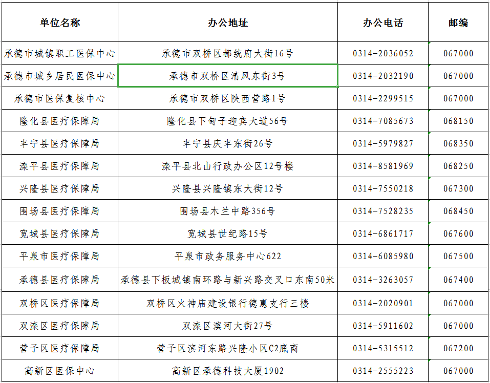承德市醫(yī)療保險基金管理結(jié)算中心電話是(0314)2036052、(0314)2022223