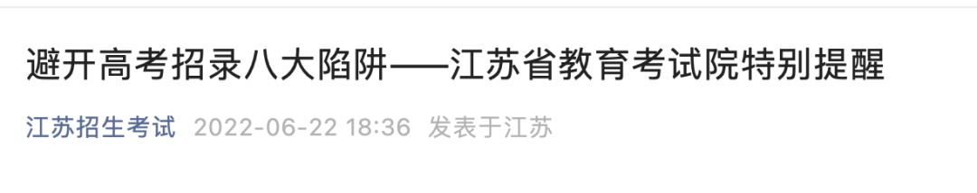 江蘇省教育考試院也發(fā)布特別提醒,避開高考招錄八大陷阱: