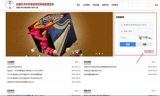全國(guó)藝術(shù)科學(xué)規(guī)劃項(xiàng)目申報(bào)管理系統(tǒng)用戶忘記密碼怎么辦?