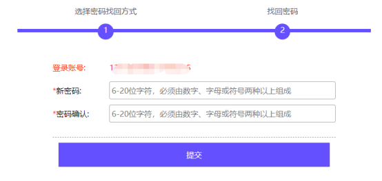 - 在“密碼找回”界面,安裝界面提示,輸入您的新密碼,點擊“提交”按鈕,完成密碼重置。