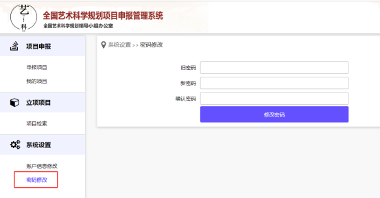 - 您登錄系統(tǒng)后,請點擊左側(cè)菜單中的“密碼修改”功能,系統(tǒng)將進(jìn)入您的密碼修改界面。如下圖:。