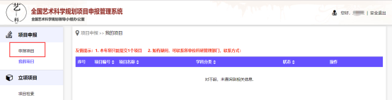 - 單擊左側(cè)“項目申報”下的“申報項目”功能,系統(tǒng)將進(jìn)入項目申報頁面;
