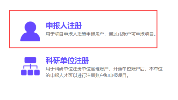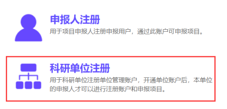 請聯(lián)系您所在單位的科研部門負(fù)責(zé)人,通過系統(tǒng)注冊功能中的<科研單位注冊>功能,在線向申請科研單位賬戶。