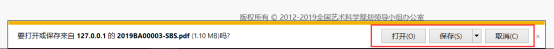 - 系統(tǒng)將會彈出下載該申報項目的PDF文件(如果您還未安裝PDF閱讀器,請先安裝,否則將不能直接打開該PDF文件查閱);單擊<打開>系統(tǒng)將直接打開該申報評審書的PDF文件;單擊<保存>系統(tǒng)將該申報評審書保存到您指定的位置;單擊<取消>系統(tǒng)將取消本次的操作。
