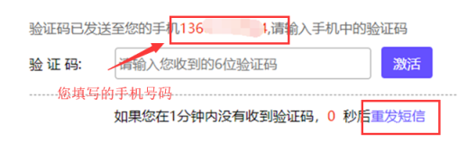 請按照下圖所示,檢查您的手機號碼是否正確。正確無誤請點擊“重發(fā)短信”按鈕,系統(tǒng)將重新給您手機發(fā)送短信驗證碼。