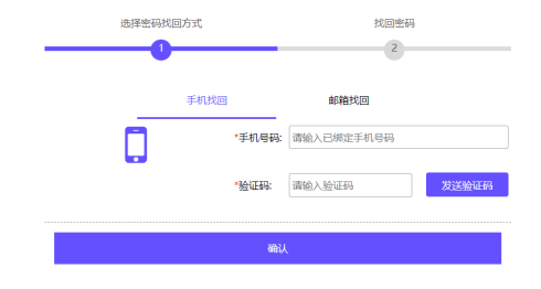 - 在“密碼找回”界面,選擇您的密碼找回方式。目前系統(tǒng)支持通過手機號和郵箱找回密碼(手機或郵箱必須為您賬戶注冊時填寫信息)。輸入您的賬號關(guān)聯(lián)的手機號或郵箱后,單擊<發(fā)送驗證碼>,系統(tǒng)將給您的手機號或郵箱發(fā)送驗證碼信息(如果提示手機號或郵箱不存在,說明此手機號或郵箱尚未關(guān)聯(lián)注冊賬戶)。將您收到的驗證碼,填寫到正確填寫到“驗證碼”輸入框中,點擊<確認(rèn)>按鈕,系統(tǒng)將進(jìn)入密碼找回界面。