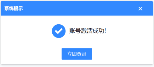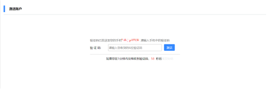 8)將短信正文中的6位數(shù)字驗證碼,輸入到“驗證碼”輸入框中,點擊“激活”按鈕,完成賬戶激活操作。系統(tǒng)提示“賬戶激活成功”提示框。