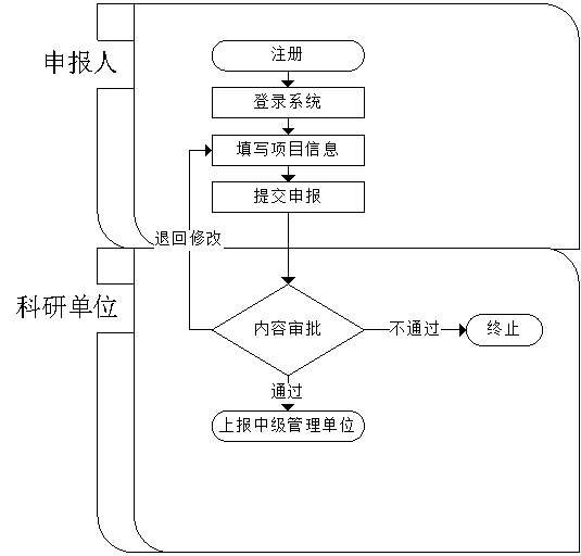 在項(xiàng)目申報(bào)期內(nèi),用于申報(bào)人在線填報(bào)自己負(fù)責(zé)的項(xiàng)目。完成項(xiàng)目申報(bào)流程如下圖所示: