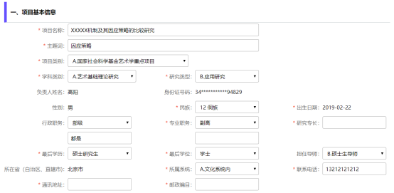 3) 按照項(xiàng)目申報(bào)要求,將待申報(bào)的項(xiàng)目信息資料,填入相應(yīng)的輸入框中。信息輸入過程中,系統(tǒng)將隨輸入及時(shí)驗(yàn)證輸入內(nèi)容的合法性,并以紅色提示文字提示錄入問題。