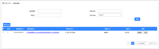 立項(xiàng)項(xiàng)目功能,用于查看當(dāng)前申報(bào)人在研項(xiàng)目。